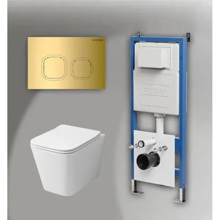 Комплект GROSSMAN инсталляция 900.K31.01.000 + клавиша смыва 700.K31.02.300.300 золото глянцевый + унитаз GR-4441S