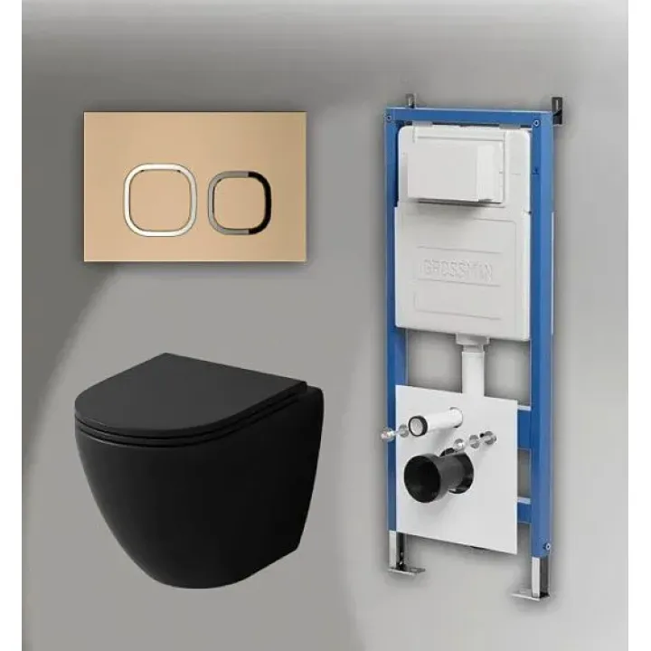 Комплект GROSSMAN инсталляция 900.K31.01.000 + клавиша смыва 700.K31.02.310.310 золото матовый + унитаз GR-4455BMSQ