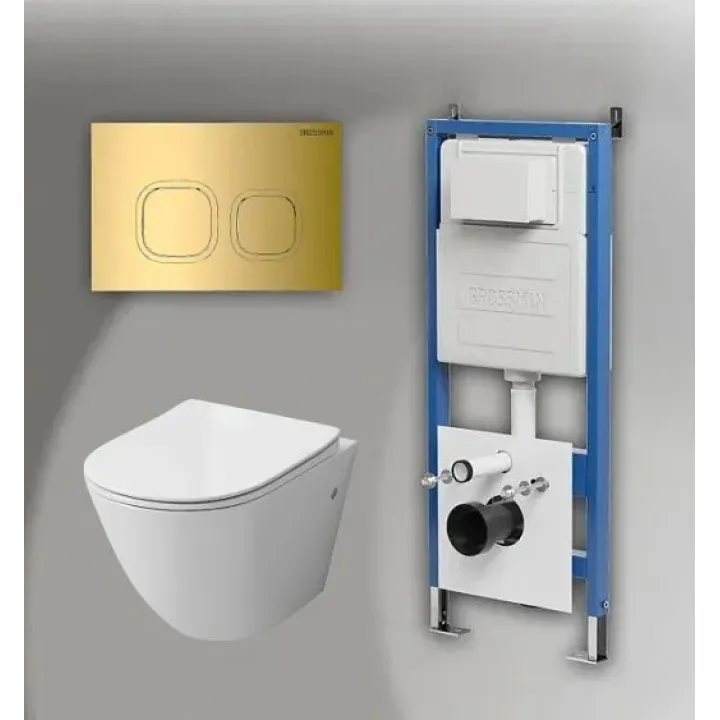 Комплект GROSSMAN инсталляция 900.K31.01.000 + клавиша смыва 700.K31.02.300.300 золото глянцевый + унитаз GR-4411SQ