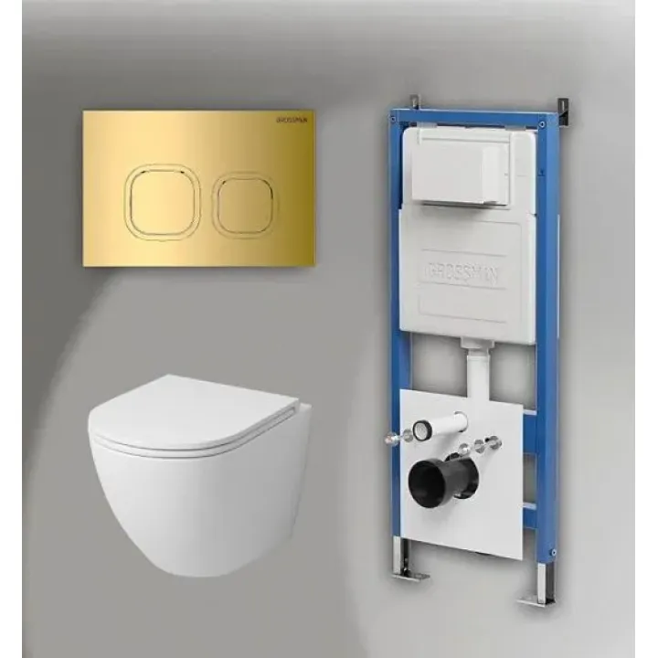 Комплект GROSSMAN инсталляция 900.K31.01.000 + клавиша смыва 700.K31.02.300.300 золото глянцевый + унитаз GR-4455MS