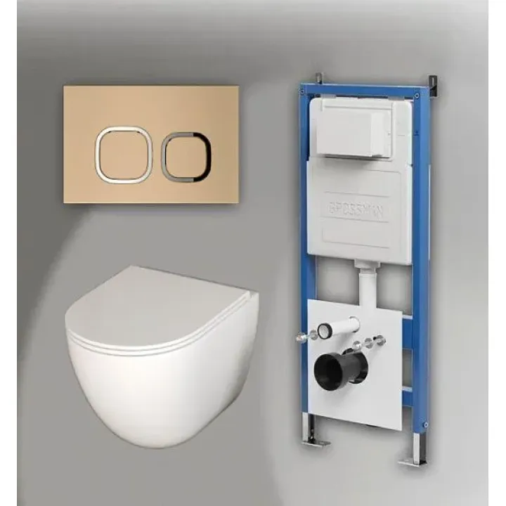 Комплект GROSSMAN инсталляция 900.K31.01.000 + клавиша смыва 700.K31.02.310.310 золото матовый + унитаз GR-4455SQC
