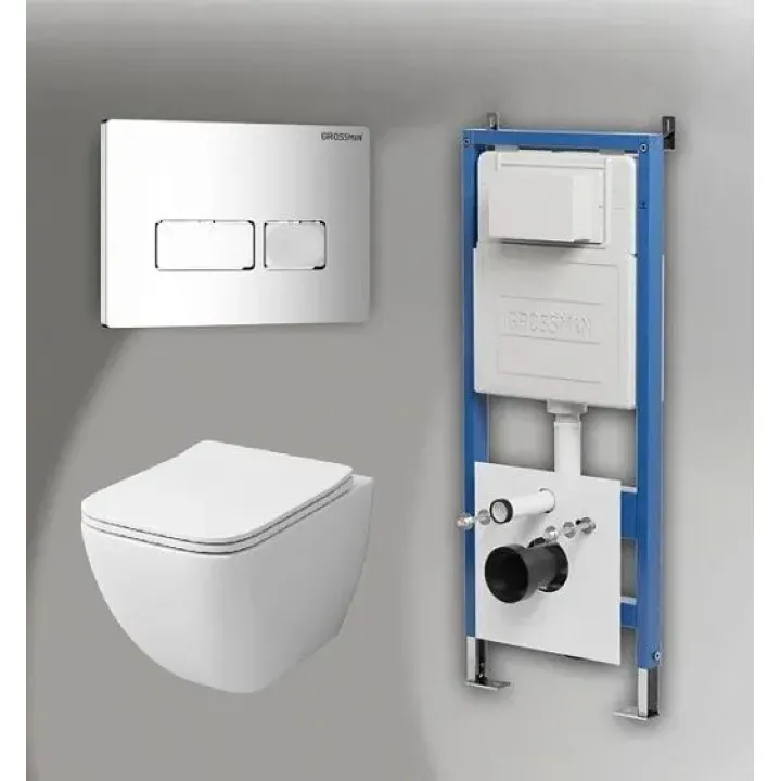 Комплект GROSSMAN инсталляция 900.K31.01.000 + клавиша смыва 700.K31.03.100.100 хром глянцевый + унитаз GR-4447S
