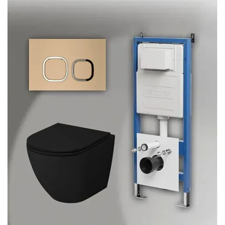 Комплект GROSSMAN инсталляция 900.K31.01.000 + клавиша смыва 700.K31.02.310.310 золото матовый + унитаз GR-4455BMS