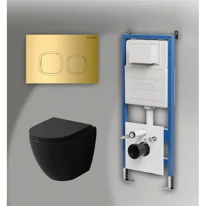 Комплект GROSSMAN инсталляция 900.K31.01.000 + клавиша смыва 700.K31.02.300.300 золото глянцевый + унитаз GR-4455BMSQ