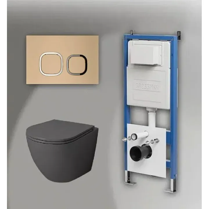 Комплект GROSSMAN инсталляция 900.K31.01.000 + клавиша смыва 700.K31.02.310.310 золото матовый + унитаз GR-4455GMS