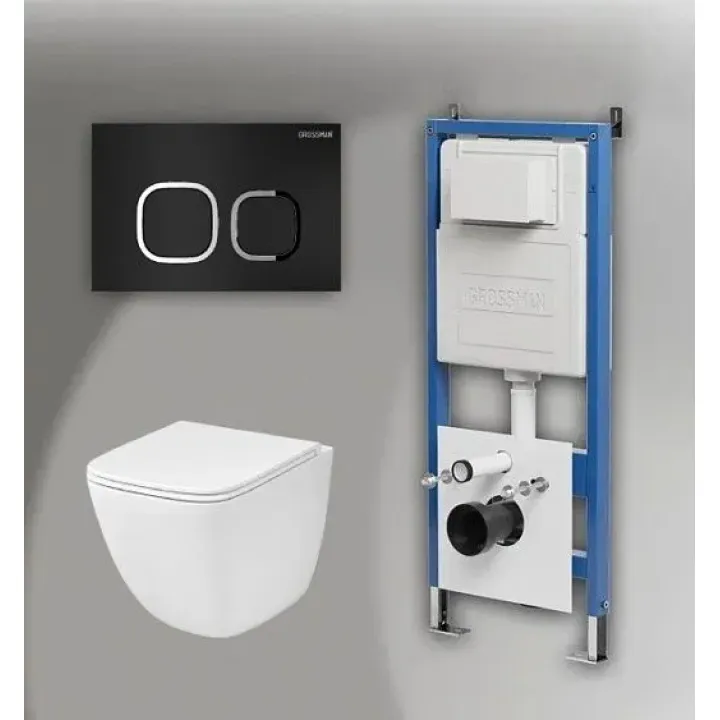 Комплект GROSSMAN инсталляция 900.K31.01.000 + клавиша смыва 700.K31.02.210.210 черный матовый + унитаз GR-4497SQC