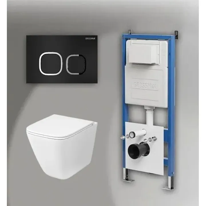 Комплект GROSSMAN инсталляция 900.K31.01.000 + клавиша смыва 700.K31.02.210.210 черный матовый + унитаз GR-4479SQC