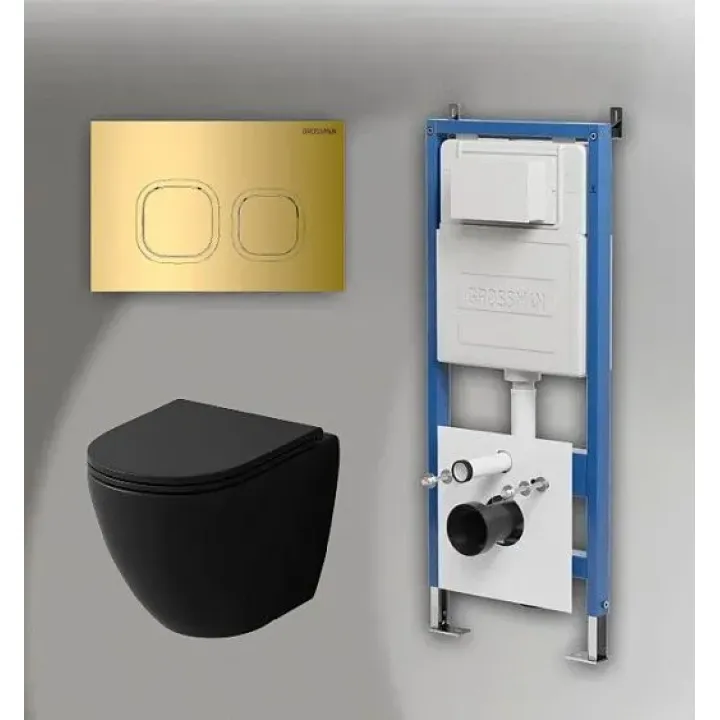 Комплект GROSSMAN инсталляция 900.K31.01.000 + клавиша смыва 700.K31.02.300.300 золото глянцевый + унитаз GR-4455BMS