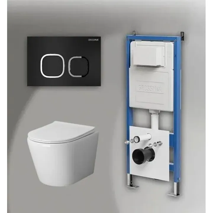 Комплект GROSSMAN инсталляция 900.K31.01.000 + клавиша смыва 700.K31.02.210.210 черный матовый + унитаз GR-4478S