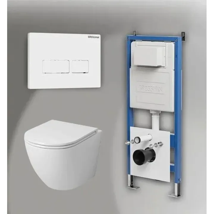 Комплект GROSSMAN инсталляция 900.K31.01.000 + клавиша смыва 700.K31.03.000.000 белый + унитаз GR-4455SQ