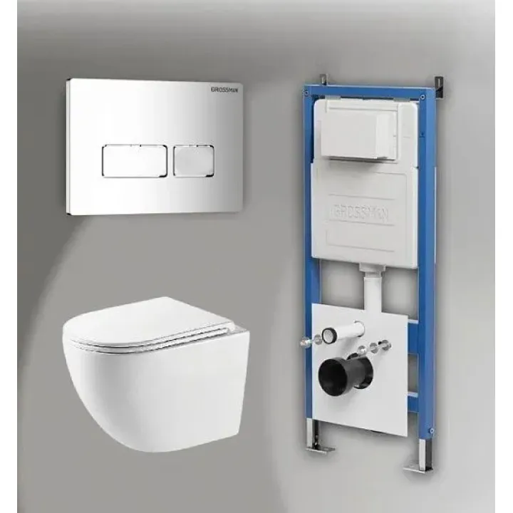 Комплект GROSSMAN инсталляция 900.K31.01.000 + клавиша смыва 700.K31.03.100.100 хром глянцевый + унитаз GR-4411SQC