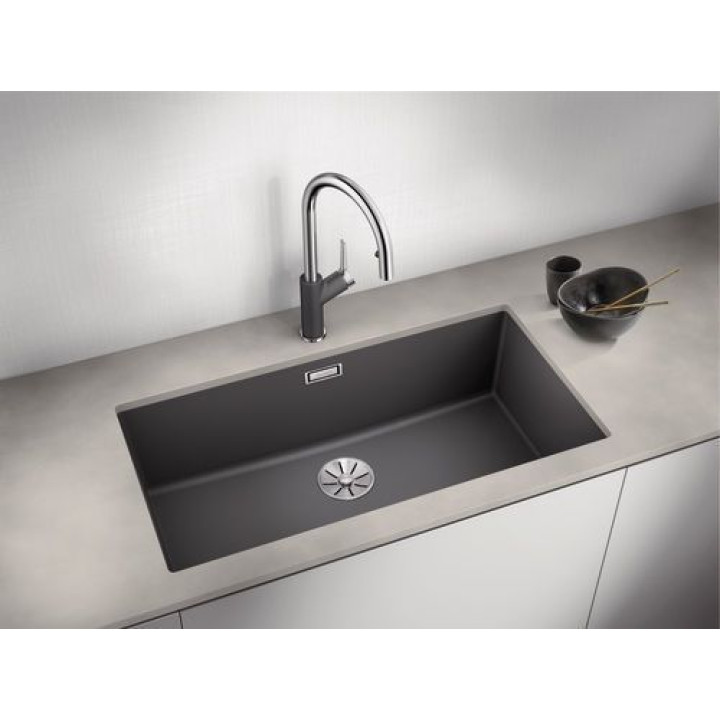 Кухонная мойка BLANCO SUBLINE 800-U отводная арматура InFino® темная скала гранит 523142