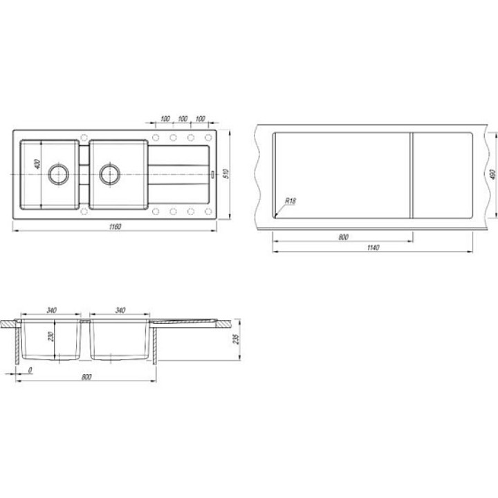 Кухонная мойка FLORENTINA Комби 1160 антрацит (21.415.E1160.302)