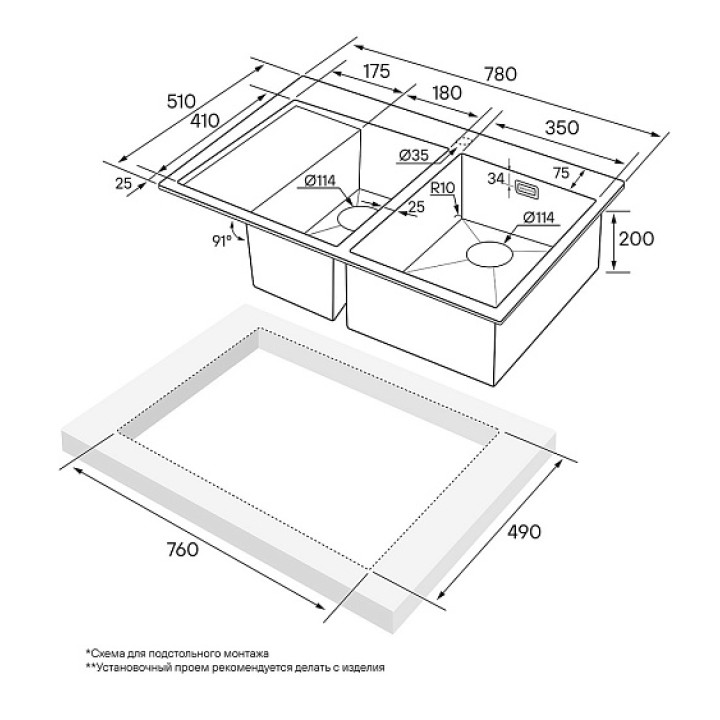 Кухонная мойка PAULMARK Union PM537851-BGR