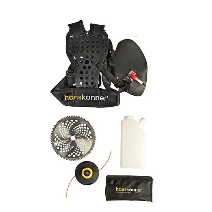 | Комплектация | катушка с нейлоновой леской, ранцевый ремень, канистра для топливной смеси, защитный кожух с винтами (комплект), отвертка с торцевым ключом, шестигранный ключ (2 шт), двухсторонний гаечный ключ, стяжка, сумка для инструмента, фреза 80 зубьев |