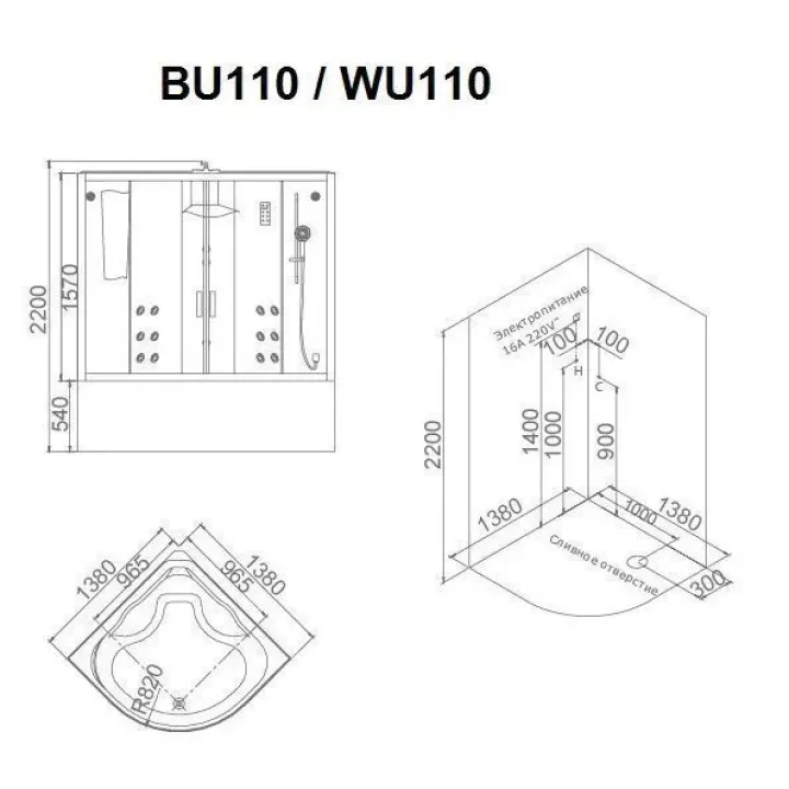| Размер | 1380х1380х2200 мм |