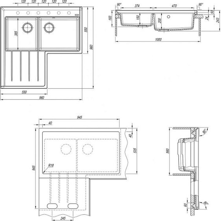 | Форма мойки | г-образная |