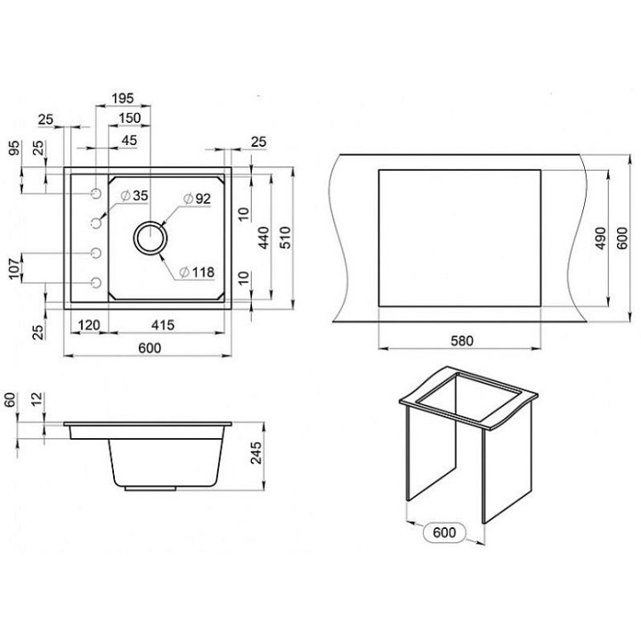 | Габариты мойки (ШхГ) | 600х510 мм |