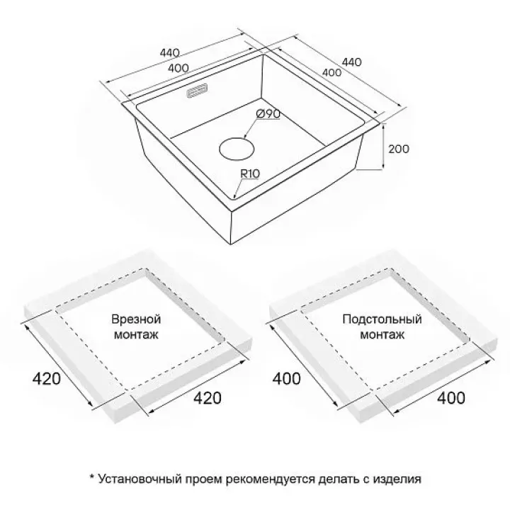 | Тип монтажа | под столешницу |