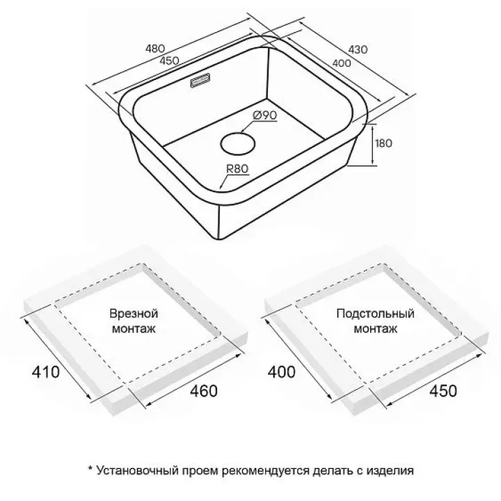 | Толщина мойки | 0,8 мм |