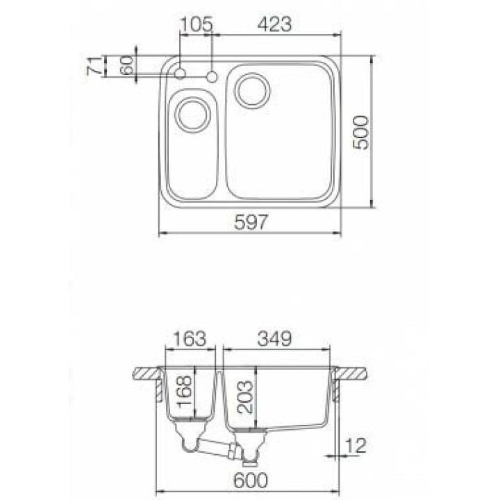 | Ширина мойки | 59,7 |