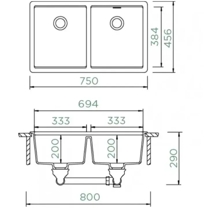 Габариты чаш (ДхШхГ) 2х(384х333х200) мм