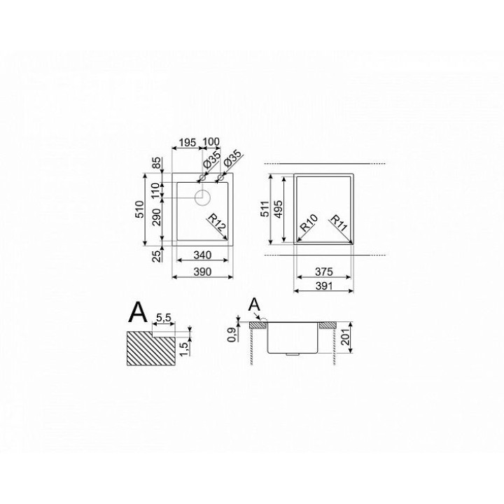 | Размеры выреза в столешнице | 375х495 мм |