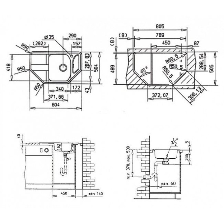| Размеры мойки (ШхГ) | 80.40х50.40 см |