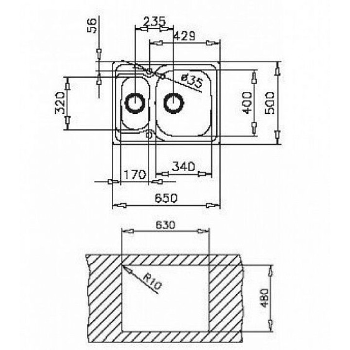 | Размер монтажного отверстия под мойку (ШхГ) | 63x48 см |