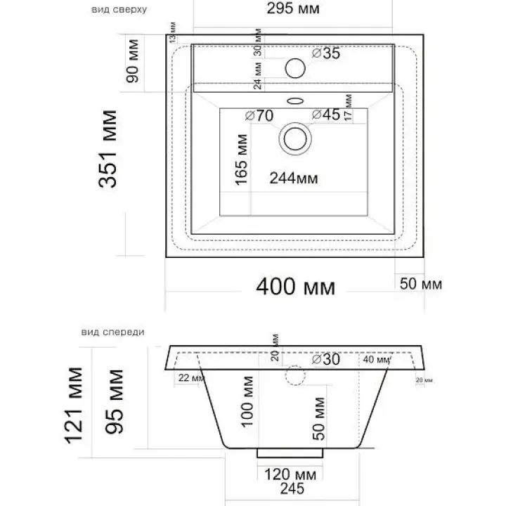 | Тип установки | накладная, встраиваемая сверху |