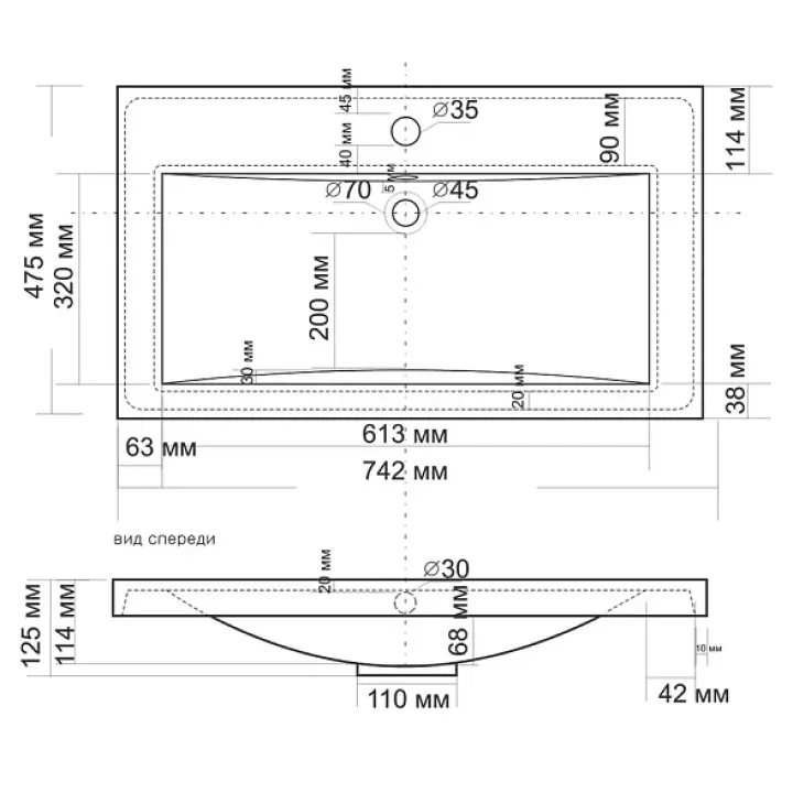 | Габариты мойки (ВхШхГ) | 125х742х475 мм |