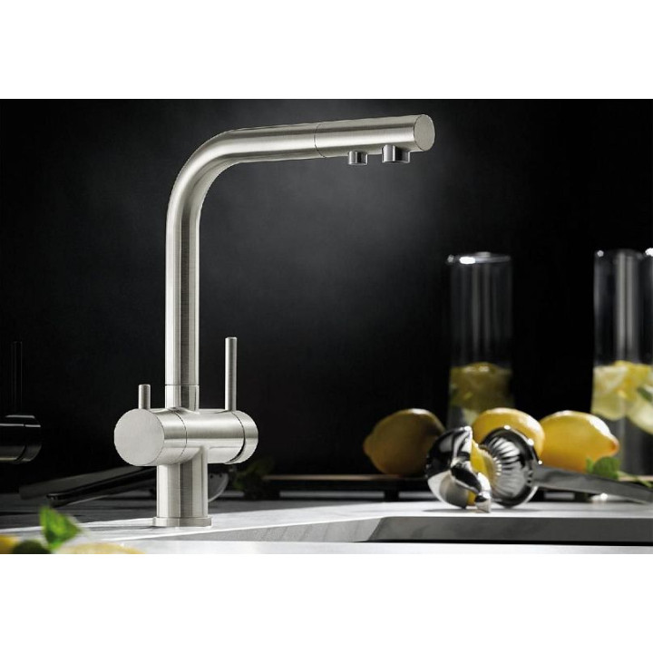 | Удобный 2-в-1-смеситель с рычагом холодной и горячей воды справа, и рычагом для фильтрованной воды слева | да |