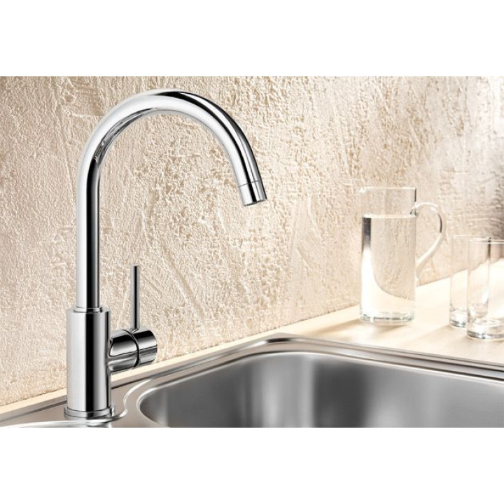| Комплектация | однорычажный смеситель, вращающийся излив, требуется отверстие под смеситель Ø 35 мм, керамический дисковый картридж, легкое подключение гибкими шлангами длиной 350 мм с гайкой 1/2“ |
