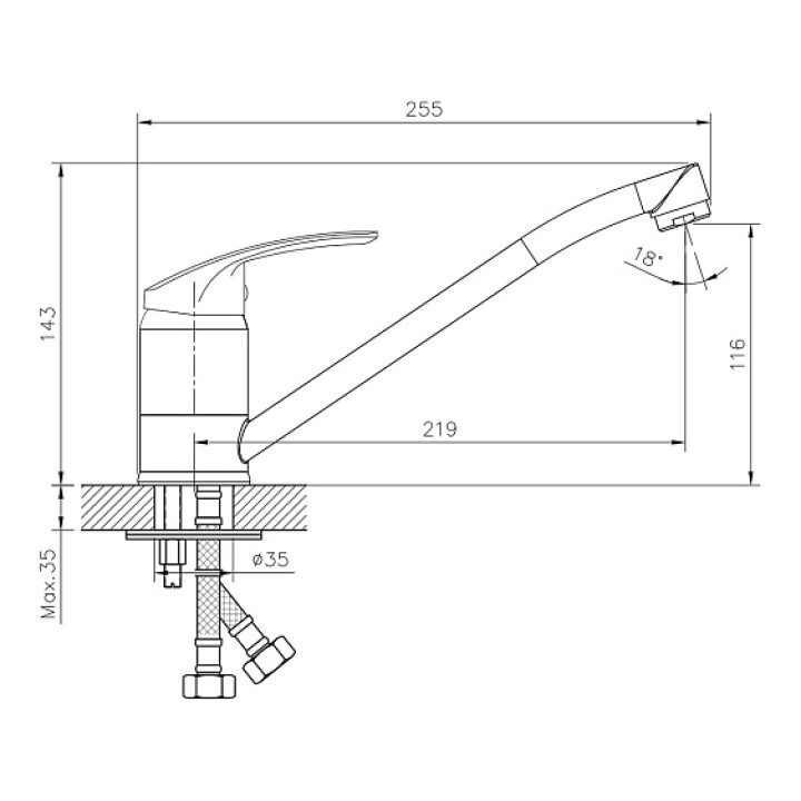 | Длина излива | 219 мм |