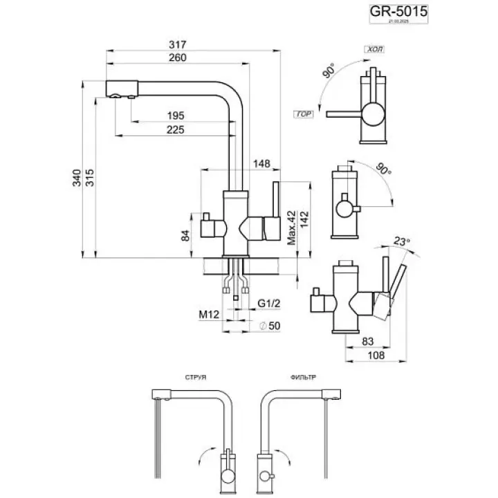 | Высота излива | 315 мм |