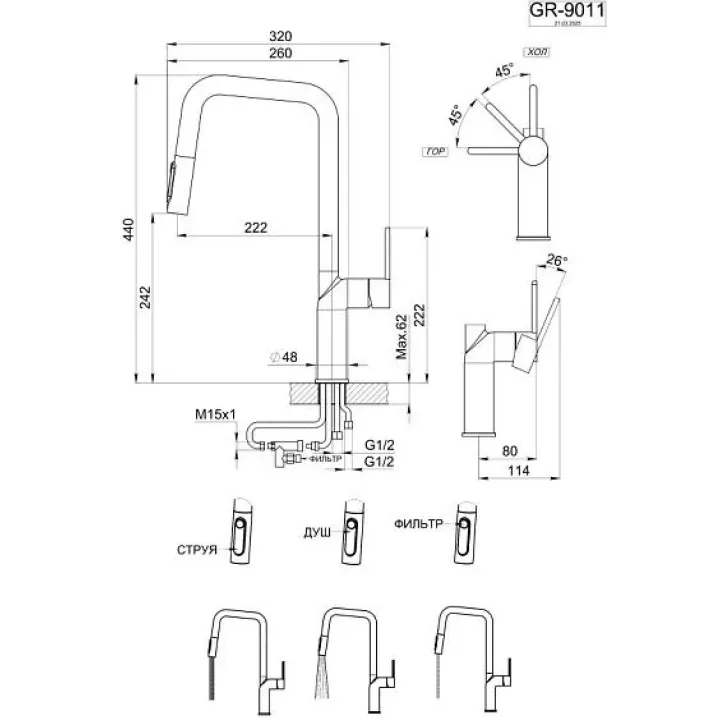 | Выдвижной излив | да |