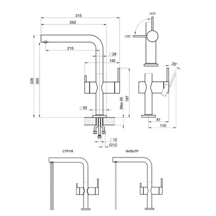 | Дизайн излива | прямоугольный |