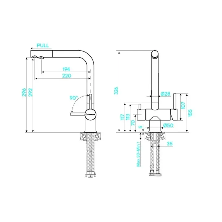 Высота излива 296 мм
