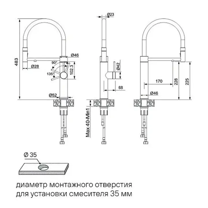 Высота смесителя 483