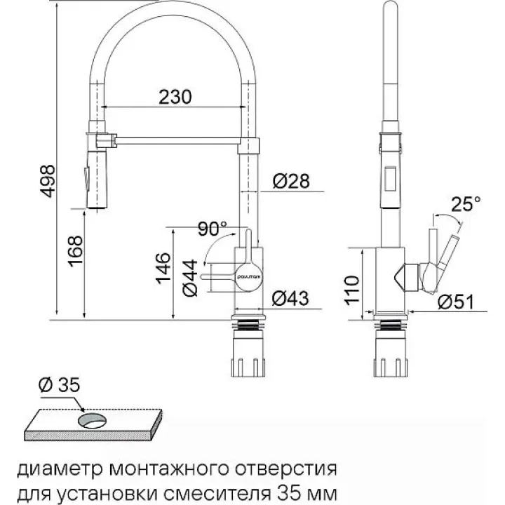 | Высота смесителя | 498 |