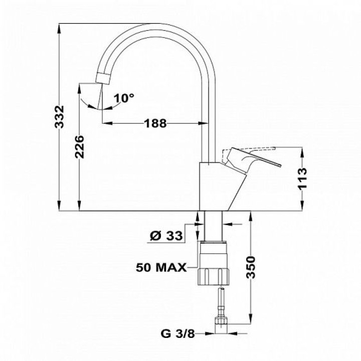 | Высота смесителя | 332 |